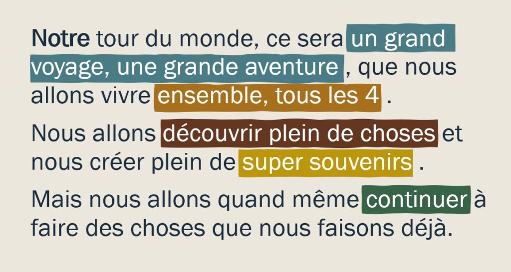 Notre tour du monde, ce sera un grand voyage, une grande aventure, que nous allons vivre ensemble, tous les 4 . Nous allons découvrir plein de choses et nous créer plein de super souvenirs . Mais nous allons quand même continuer à faire des choses que nous faisons déjà.